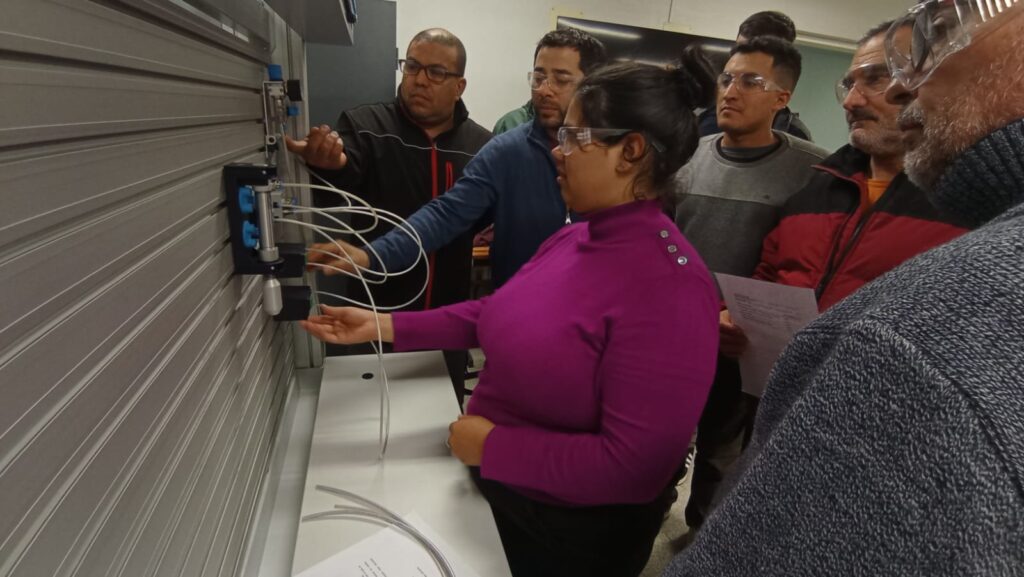 En el desarrollo del curso se abordaron temáticas centrales para la formación técnica actual, como hidráulica y neumática, así como el uso y la programación de Controladores Lógicos Programables (PLC). Estos contenidos resultaron fundamentales para el fortalecimiento de las competencias de los docentes y su transferencia al aula, en beneficio directo de los estudiantes de educación técnica.