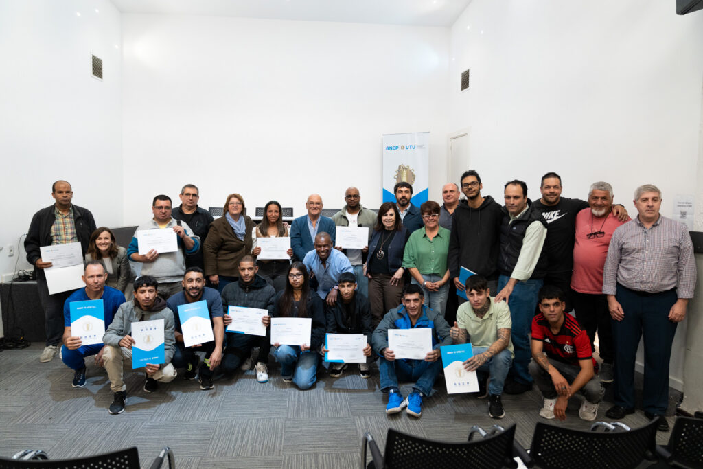La División de Capacitación y Formación Profesional (DICAFOP) realizó una nueva entrega de certificados en UTU Central, en el marco del curso de formación en Operaciones y Manejo de Autoelevadores, en articulación con INEFOP. La instancia puso en valor el impacto de estas propuestas en la mejora de oportunidades laborales y la posibilidad de formación a lo largo de la vida.