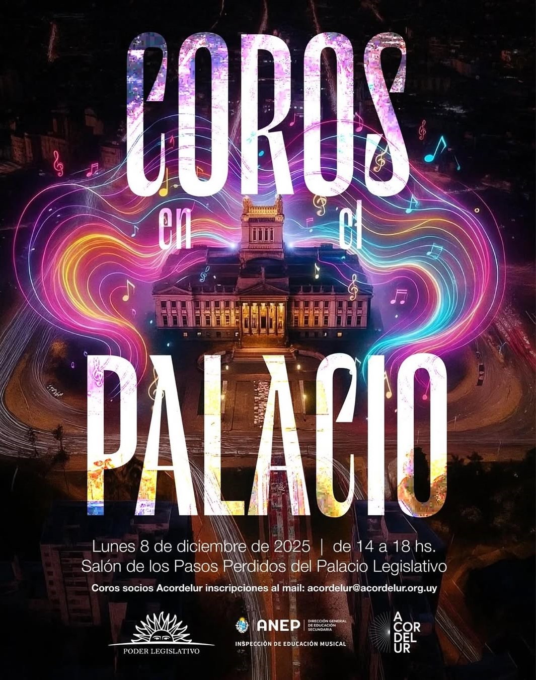 El festival es organizado por la Inspección de Educación Musical de la Dirección General de Educación Secundaria (DGES), la Asociación Coral del Uruguay (ACORDELUR) y el Poder Legislativo, en el marco del centenario del Palacio Legislativo. Esta instancia, en la que participarán alumnos de la Escuela Técnica Superior Rivera, se llevará a cabo en el Salón de los Pasos Perdidos el lunes 8 de diciembre, de 14 a 18 horas.